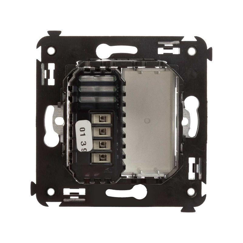 помощи саморезов; шаблон для зачистки кабеля – 11 мм; регулирование 3–120 Вт для LED ламп; регулирование 3–220 Вт для ламп накаливания и галогенных ламп; диммирование по переднему и заднему фронту; выбор режима включения освещения (плавный пуск). Кол-во модулей: 2. Цвет: "Закаленная сталь"