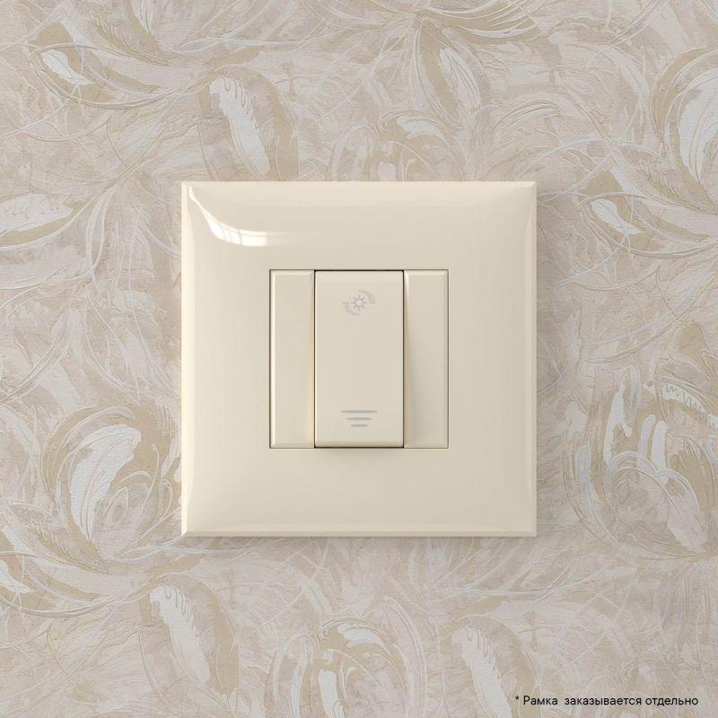 фронту. Выбор режима включения освещения (плавный пуск). Применяются для скрытой установки в стену, механизмы поставляются в комплекте с суппортом. Пластиковые детали электроустановочного изделия имеют оттенок "Ванильная дымка".