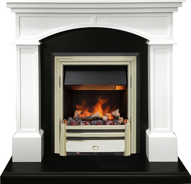 Электрокамин выполнен в золотом цвете. Золото – это материал, который никогда не выйдет из моды, это свидетельство безупречного вкуса и верности традициям. Цвет золота подчёркивает неповторимый стиль и необычность этого камина. К очагу можно подобрать любой портал, который подойдет к вашему интерьеру и станет его лаконичным продолжением. В очаге Dimplex Cavendish применяется эффект «живого» пламени Opti-Myst, в основу которого заложен инновационный принцип имитации огня - в очаге мерцает пламя, практически неотличимое от настоящего. В камине используется муляж дров ручной работы, которые невозможно отличить от настоящих поленьев, а благодаря подсветке создается полная имитация жарко пылающего очага.
