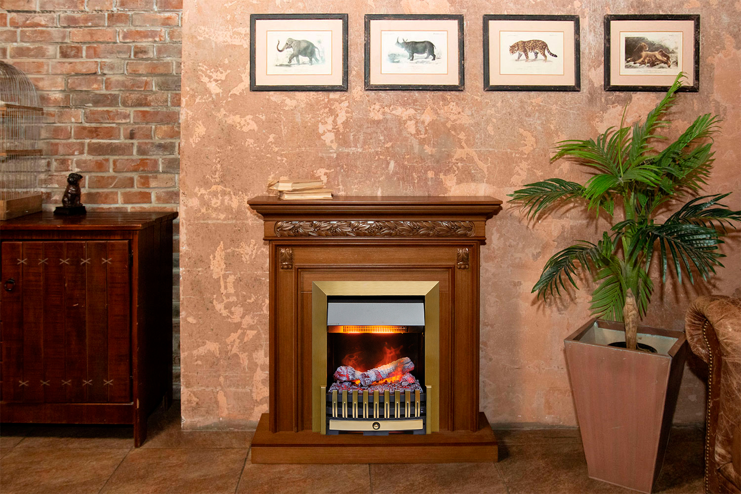 Благодаря электрическому камину в вашей квартире не только появляется «живое» пламя, но происходит и увлажнение воздуха в помещении. Очаг можно встроить в любой, подходящий по размеру портал.