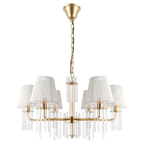 Цвет люстры Lilith - французское золото - теплый и уютный. Лаконичные формы арматуры подходят для современных интерьеров, стремящихся к минимализму. Плафоны люстры из прочной прозрачной ткани хорошо пропускают свет. Люстры на потолок Rivoli Lilith c 6 плафонами освещают площадь до 18 м2. Люстры под 6 ламп Е14 40 Вт подойдут для основного освещения гостиной, спальни, детской, кабинета, квартиры-студии. Декоративные элементы отличаются выверенной формой, простотой и высокой прозрачностью под хрусталь. Люстры в спальню Lilith Rivoli помогут создать интерьер в классическом стиле, в замковом стиле, в стиле модерн, эклектика. Идеальны для загородного дома, холла гостиниц, ресторанов.