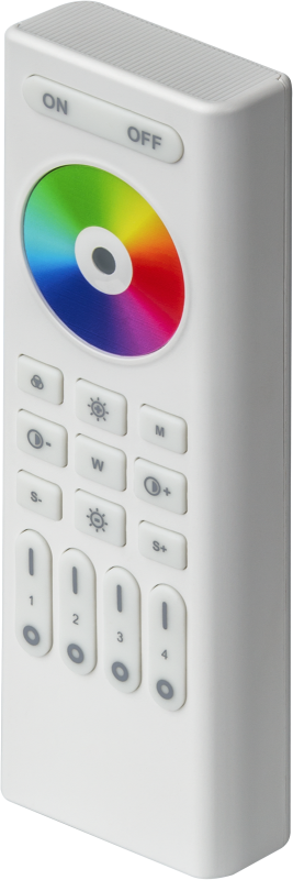 Пластиковый корпус с прорезиненными кнопками и сенсорным кольцом выбора цвета.