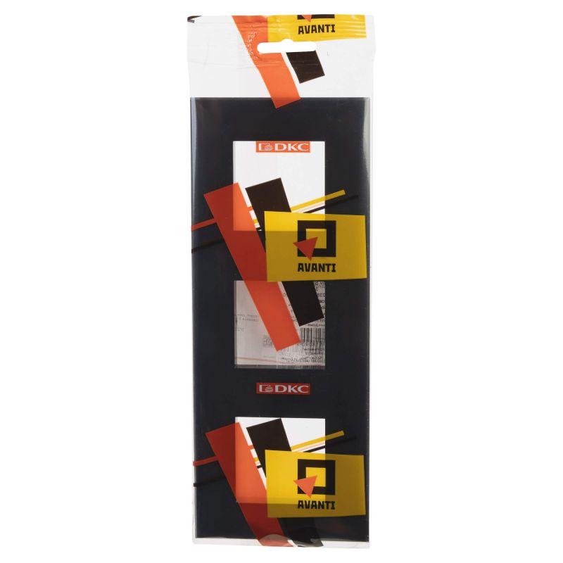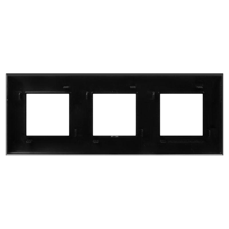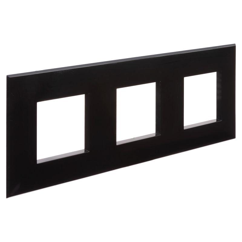 Рамка имеет 3 места под электроустановочные изделия (максимальная вместимость – 6 модулей) и может размещаться как горизонтально, так и вертикально. Габаритные размеры: 235х90 мм. Материал – термопласт.