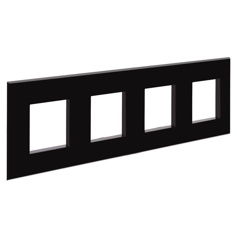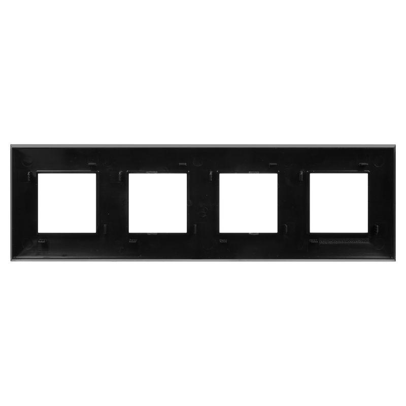 Рамка имеет 4 поста под ЭУИ (максимум 8 модулей). При этом размещаться рамка может как горизонтально, так и вертикально. Габаритные размеры: 305х90 мм. Материал – термопласт.