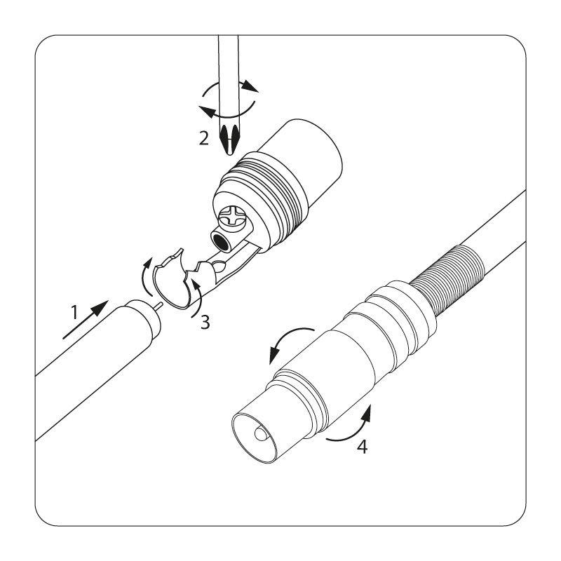 Разъем монтируется на телевизионный кабель и передает идущий по кабелю сигнал на ТВ устройства.