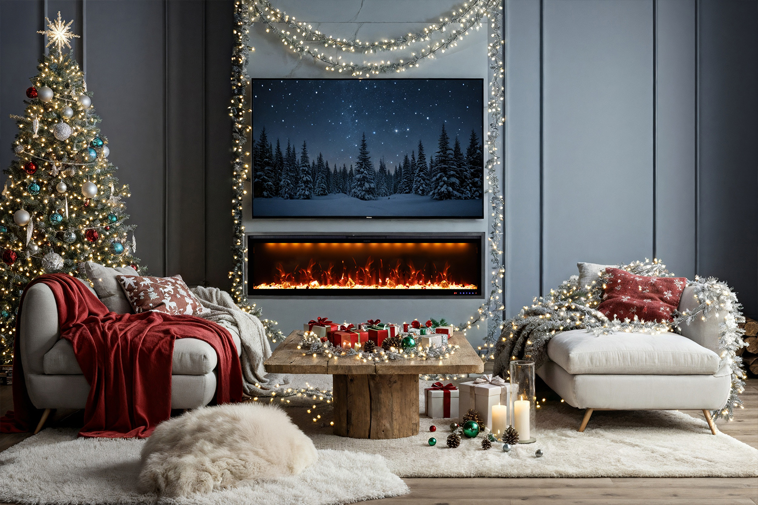 На кристаллах расположен главный декоративный элемент очага — муляжи дров, которые выглядят максимально приближено к натуральным: они имеют природную необычную форму и текстуру дерева, опаленного пламенем.