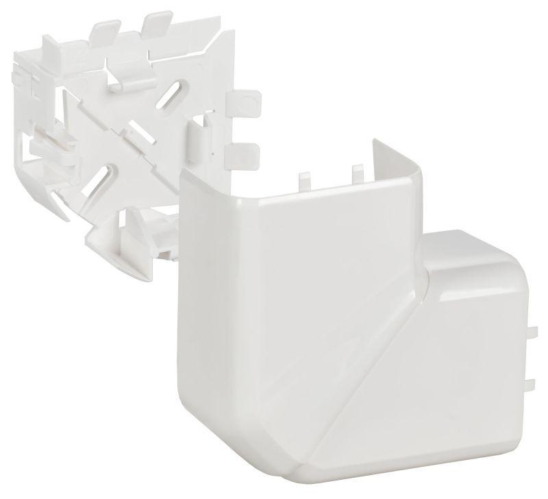 Угол защёлкивается на корпус кабель-канала. Допускается установка на кабель-каналы с разделительными/несущими перегородками или без них. Цвет: белый