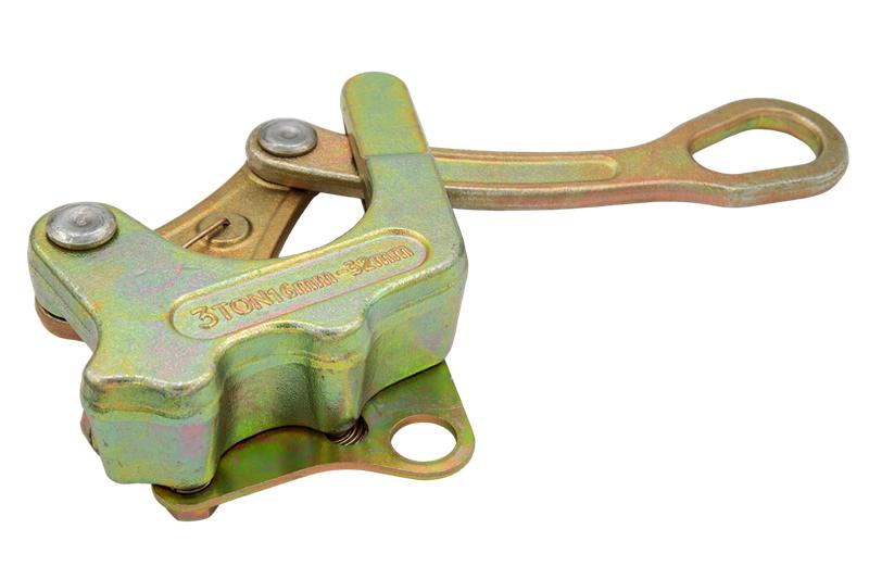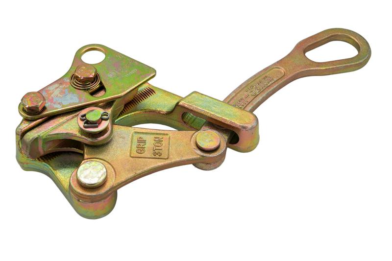 Зажим оснащен хвостовиком с проушиной, служащий для соединения с тяговыми устройствами (лебедки, кабестаны, полиспасты и пр.)