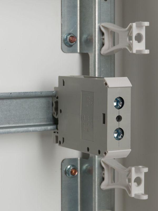 Оконечные зажимы могут закрываться пластиковыми заглушками соответствующего размера и цвета.